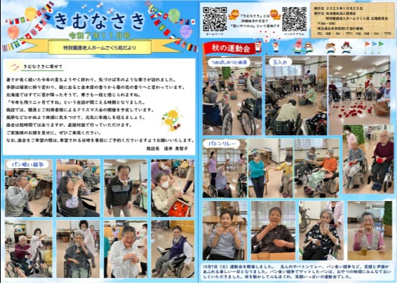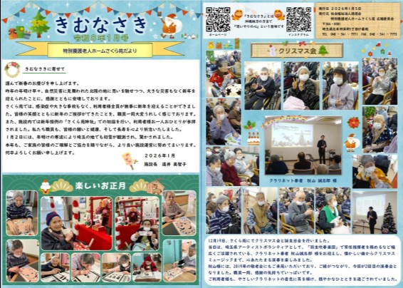 特別養護老人ホームさくら苑では、2ヶ月に1回広報紙『きむなさき」を発行し、