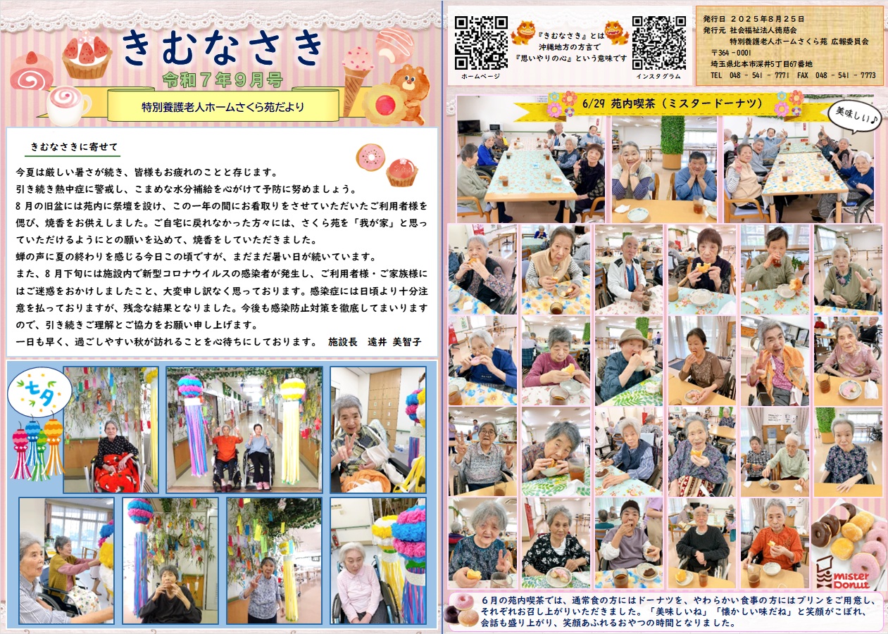 特別養護老人ホームさくら苑では、2ヶ月に1回広報紙『きむなさき」を発行し、